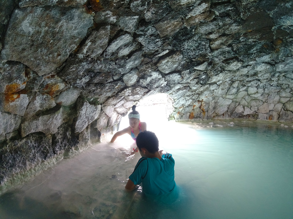还有一处是从室里的左边出去就能看到一个洞穴,小孩子很喜欢在这里玩。另外还有一个桑拿室和蒸汽室。如果买更高一级的票会发浴袍,有SPA和多一种深绿色的海澡面膜,在吃饭的时候另送一杯香槟酒。