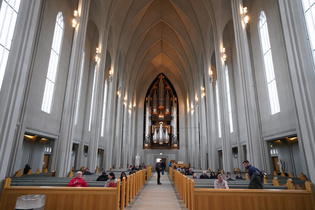 是冰岛最大教堂73米高,以诗人Hallgrímur Pétursson命名。国家建筑师GuðjónSamuelsson于1937年开始教堂设计,外观受到冰岛火山运动形成的玄武岩熔岩流景观启发,历时38年于1986年全部完工,是冰岛游必到的地标景观,外型酷似NASA的航天飞机。人多的时候会有好几多大轿子车停靠,要想登顶远眺要需要排上几小时的队。这么多的游客造访,这里却明文写着没有公共厕所!