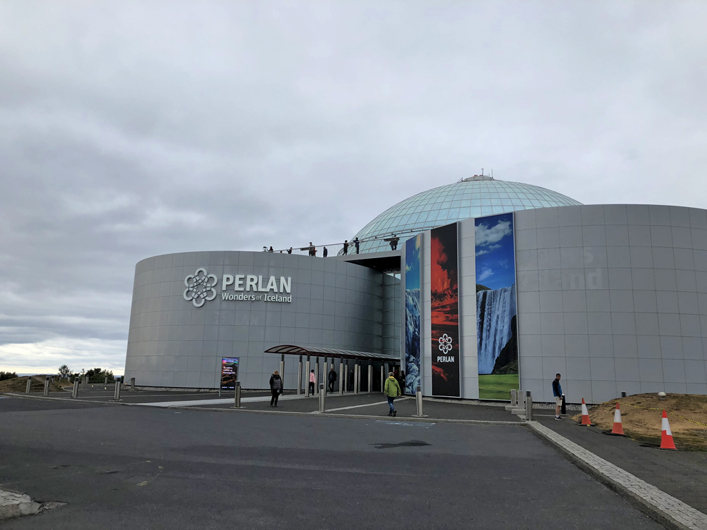 佩兰博物馆1988年建在雷克雅未克外围Oskjuhlid山上的六个巨大的地热水储水箱之上。登到顶部环形观景台可以俯看四周全部景观,包括雷克雅未克城市的哈尔格林姆教堂、周边的海洋、山脉、冰川和火山。登顶需要购票,最划算的票就是买一个360度影院北极光的连票。看到这里居然可以使用支付宝,便想试试看,结果他们告诉我,我是第一个使用这种付款方式的人!这里还有一些其它展览,如果有时间可以买全票慢慢欣赏。