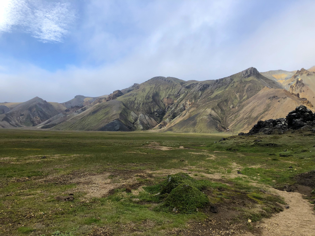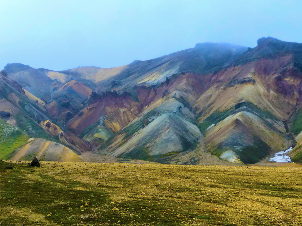 今天的计划就是开两个半小时到冰岛的内陆高地“兰德曼纳劳卡”走上三四个小时的步道,然后再开两个半小时的车回到旅馆。之所以来“兰德曼纳劳卡”,不仅因为这里的步道全世界步道排名前十名,还是冰岛本地人和驴友们心目中冰岛最美的地方。极不寻常的地理特点,有色彩斑斓的流纹岩山脉,包括粉红色、棕色、绿色、黄色、蓝色、紫色、黑色和白色。最著名的两座山脉为Bláhnúkur(意为“蓝峰”)和Brennisteinsalda(意为“硫波”)。这里的山路只有在夏季才开放,而且相当颠簸,不仅需要性能很好的四驱车,还需要具有丰富的驾驶经验。