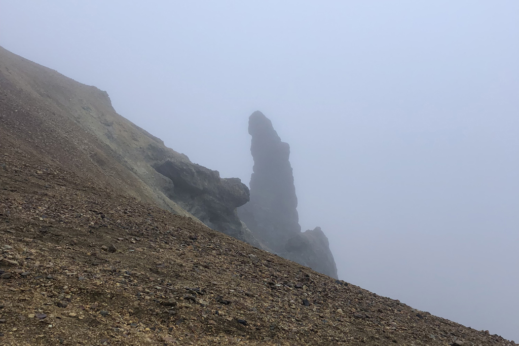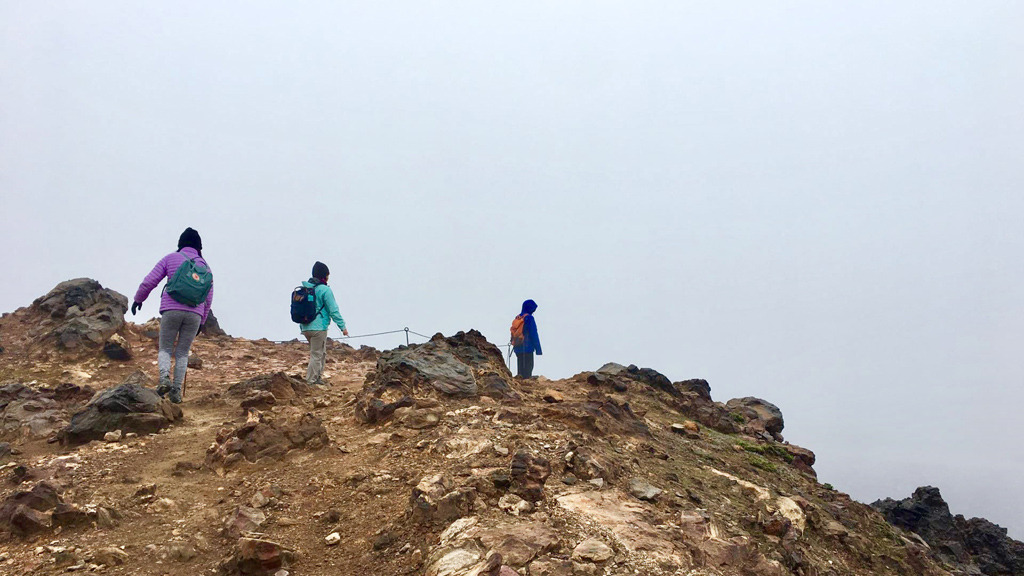 当红色步道转到绿色步道时,又是一个很徒的上坡,风大雾大,我决定不再向中攀爬了,带着女儿原地找最近的路线回起点。