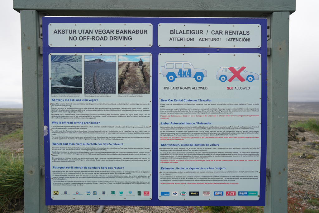 driving,回来后看冰岛的介绍讲一定不要开以没有路的地方,一方面非常危险,因为车很容易陷入火山灰的地面而不能出来,再就是车轮对地表有非常大的伤害,有些车轮印随着降水冲洗会成为很深的大沟,这种伤害可能是几十年上百年才能恢复。