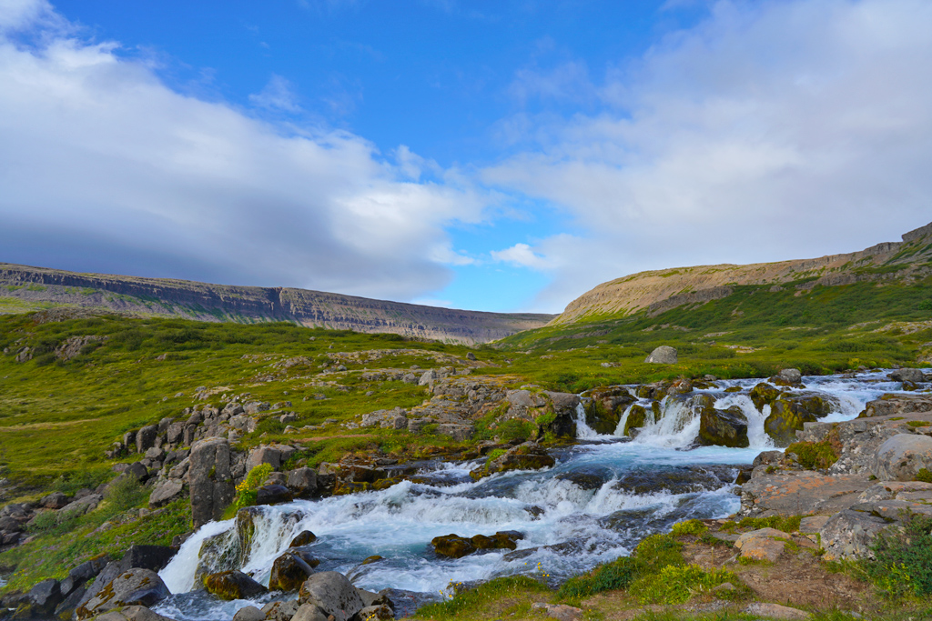 Hrísvaðsfoss是Dynjandi瀑布群的中间层