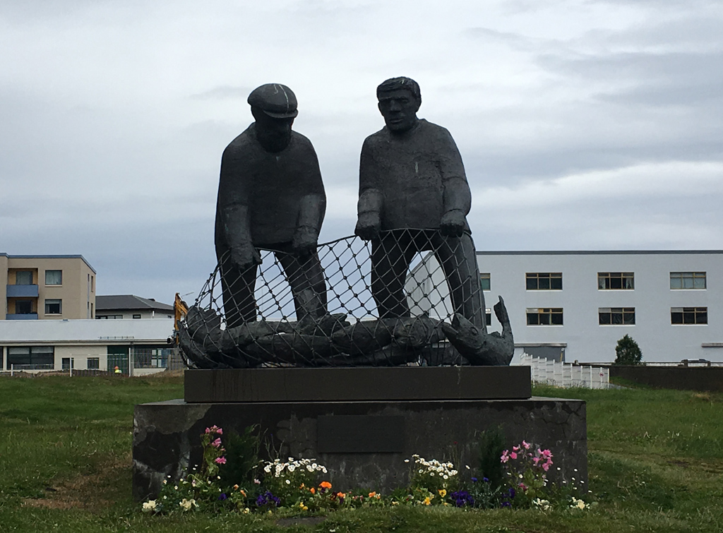 The Fisherman's Monument sculpture in Isafjordur