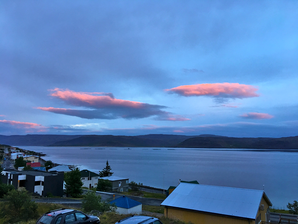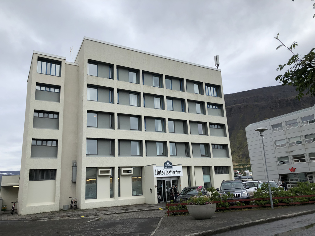我们下塌的小镇位于冰岛西北部西峡湾地区Westfjords的斯凯尔法峡湾Skutulsfjörður内,三面环山、一面临海,地形宛如一块突出海中的舌状陆地。人口约2600人,机场代号IFJ。