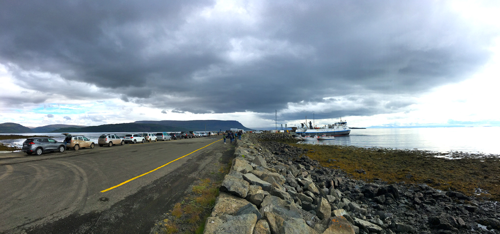赶到Brjánslækur码头,乘船去西乃半岛的stykkishólmur。从陆地绕峡湾开需要4小时左右,乘船3小时,但少开了160迈弯延曲折的山路还算划算。12:15pm开船。