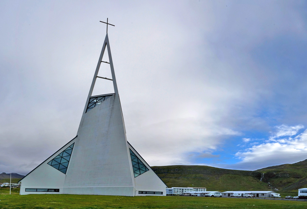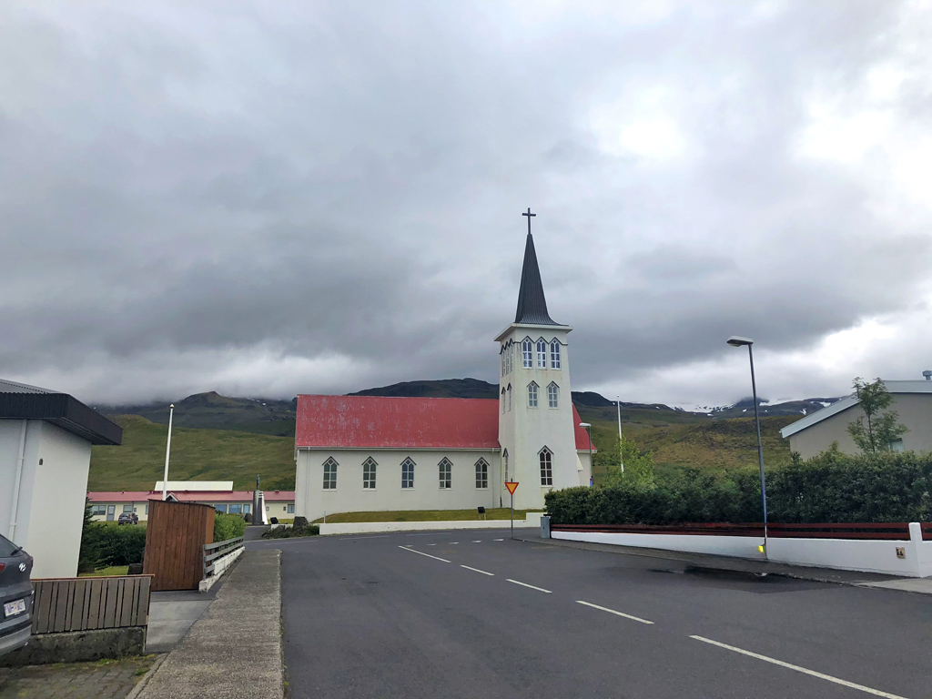 途中经过Grundarfjörður镇,Grundarfjörður教堂窗户独特