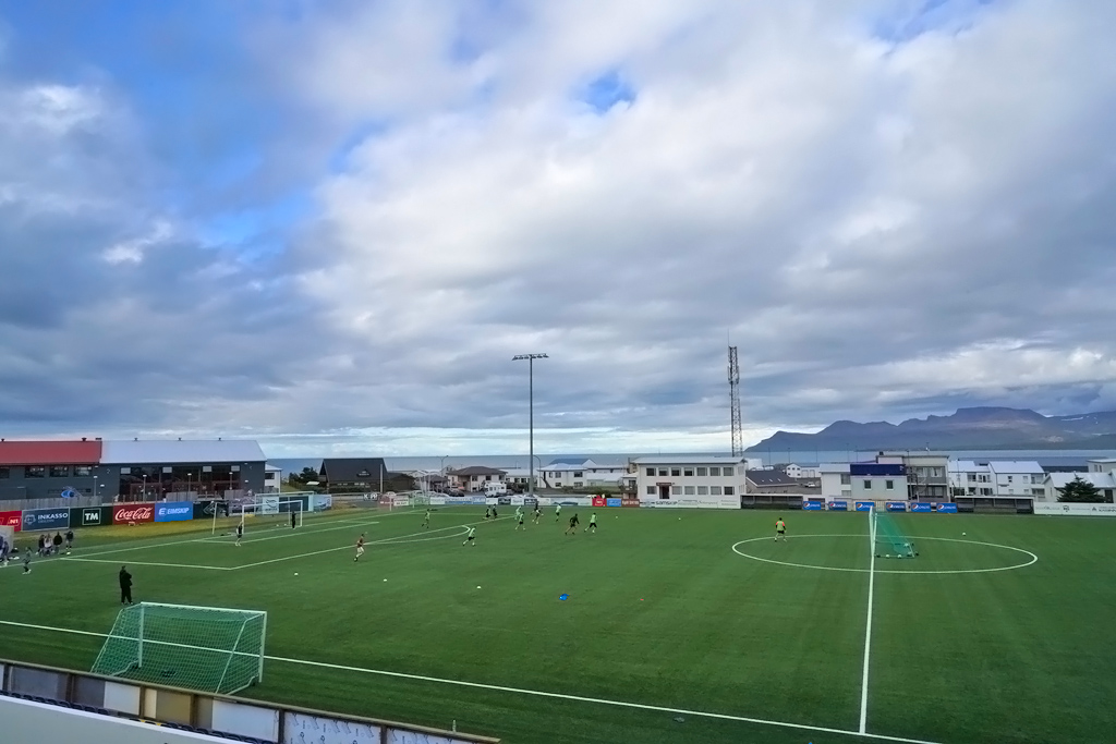 教堂旁边有个足球场,冰岛足球普及,成绩在世界上排名靠前