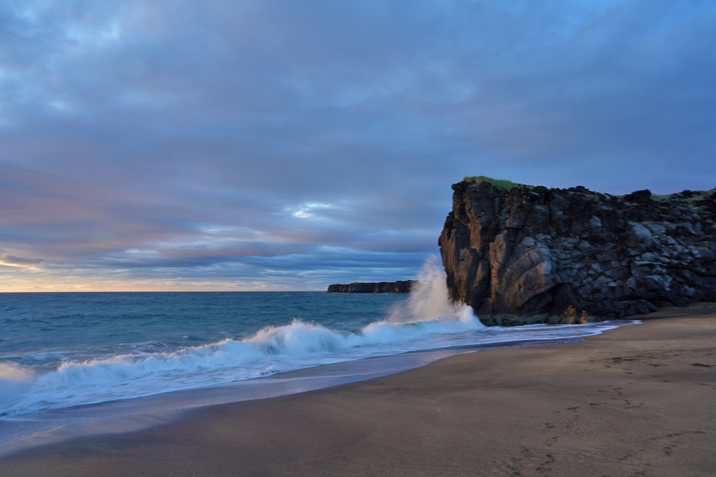 Skarðsvík海滩虽小,但浪很大
